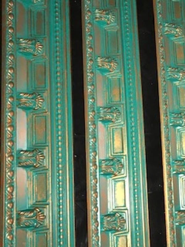 a "pargeting" is a relief plaster added to a structure. This one hand painted to compliment the interior.